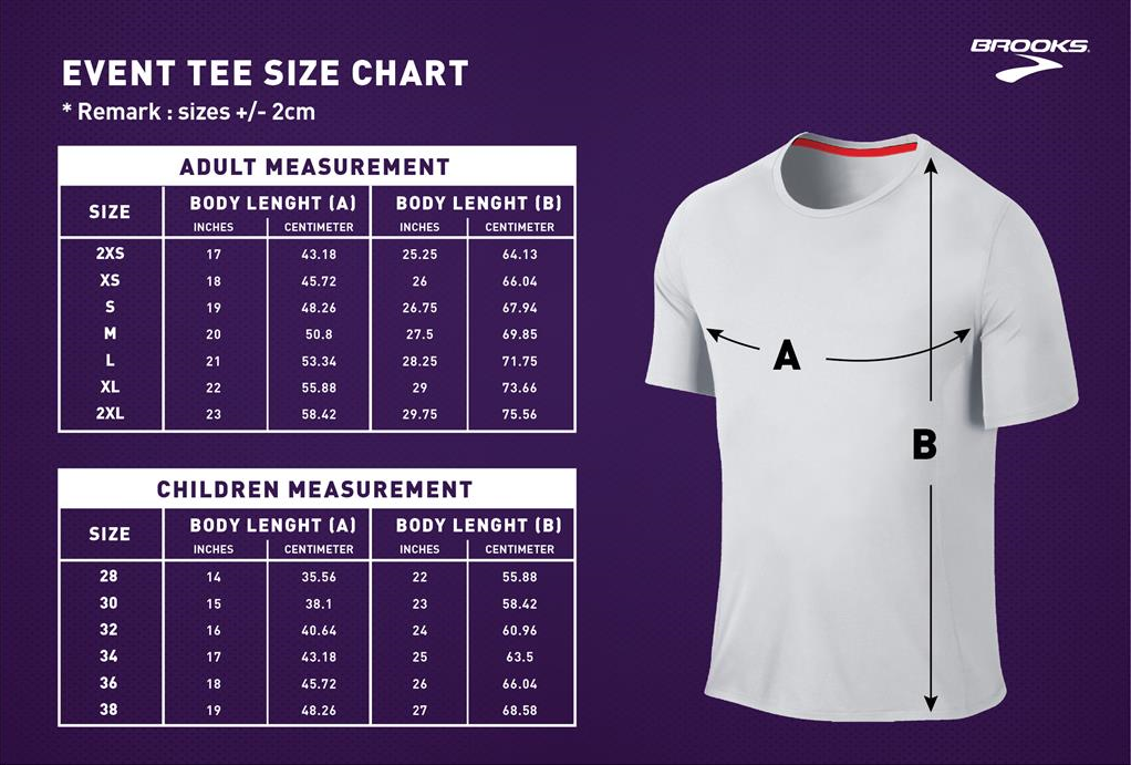 Event Tee Size Chart
